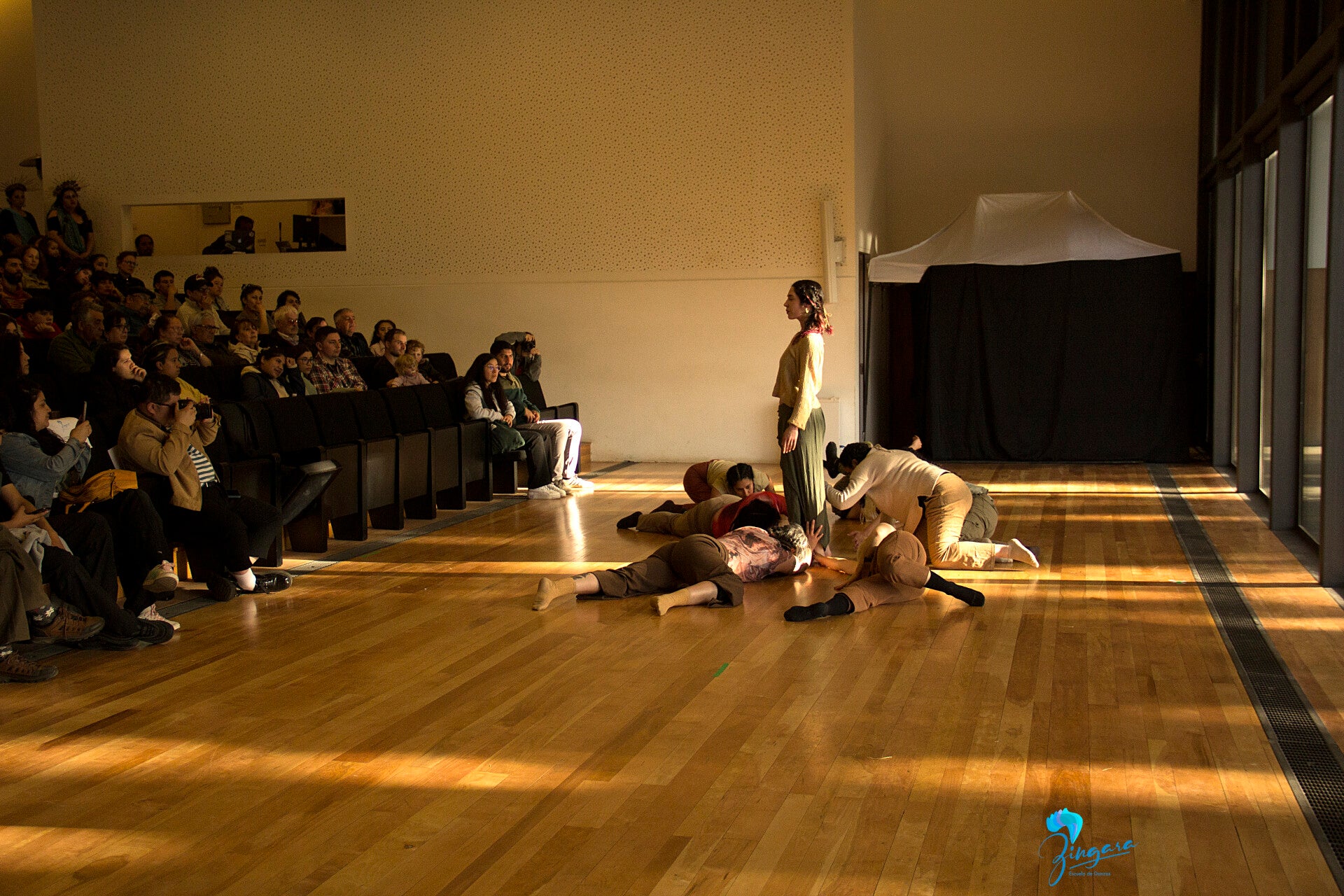 Zíngara Escuela de Danzas, funciona desde el 2015 a la fecha, contribuyendo al desarrollo y manifestación de la Danza y Artes del Movimiento, así como otras disciplinas afines a las artes escénicas. Zíngara trabaja desde una perspectiva de género, donde la mayoría de sus profesoras/es y su fundadora son mujeres. Trabaja de forma asociativa y regular con profesoras de diversas disciplinas Danza Moderna, del Vientre, Tribal, Ritmos Urbanos, Flamenco entre otros. Siendo parte de la Red de Artes Escénicas de la Región de Aysén, la Red de Espacios Culturales de la Región de Aysén y el Colectivo Danzas Aysén. El espacio incorpora enfoques de inclusión social, prestando apoyo y realizando presentaciones en diferentes actividades de carácter social desarrolladas en nuestra comunidad, (Centro Rehabilita, Teletón, Prodemu). Nos vinculamos con el entorno facilitando el espacio para diversas actividades que requiera la comunidad y para la creación de obras; tales como Nlinfa y Migramorfosis del Colectivo Transitar; y el videodanza de “Mujer Territorio Aysén” en 2020 y la obra “La Quinta Esencia” en 2021. Actualmente, tenemos clases regulares de seis disciplinas diferentes, siendo la primera escuela de formación de artes escénicas de la Región de Aysén.
